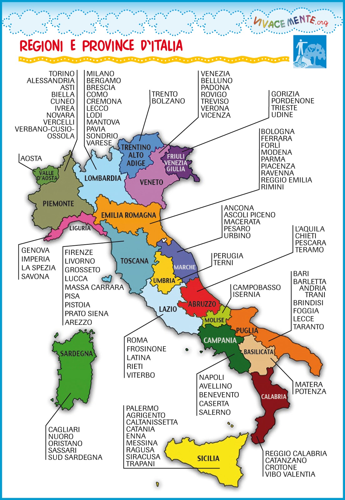 Regioni ditalia capoluoghi regioni italiane capoluoghi italiani italia regioni e capoluoghi. Questa cartina d'italia è diversa, fresca, curiosa, giovane e utile!